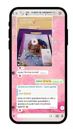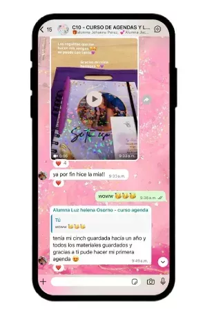Donde tendrás Soporte directo conmigo y descuentos especiales en nuestros diseños digitales y demás cursos de papeleria creativa.